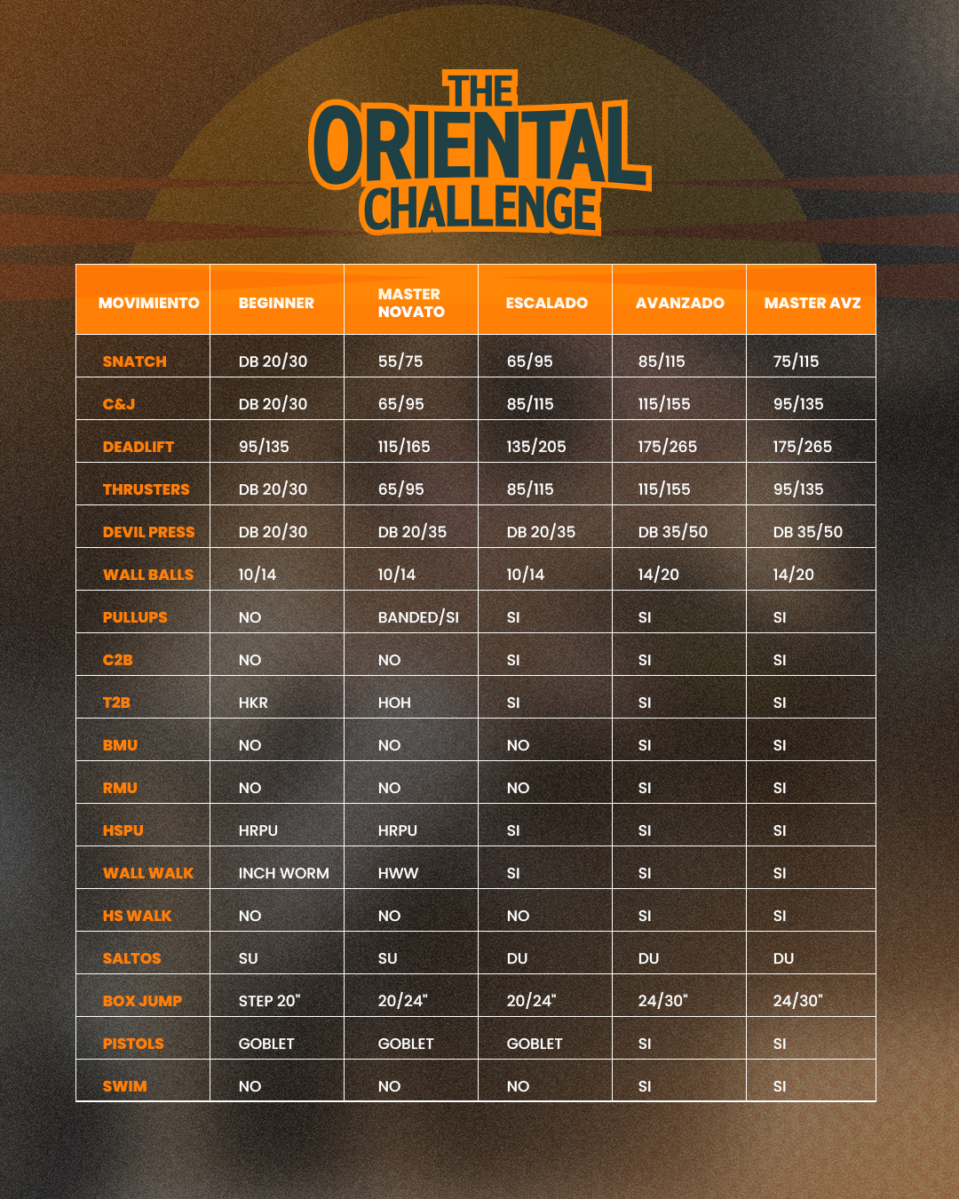 El epicentro del CrossFit en Oriente. Únete a nosotros el 2 y 3 de Agosto en las vibrantes ciudades de Barcelona y Lechería, donde la energía de la competencia llenará cada rincón.